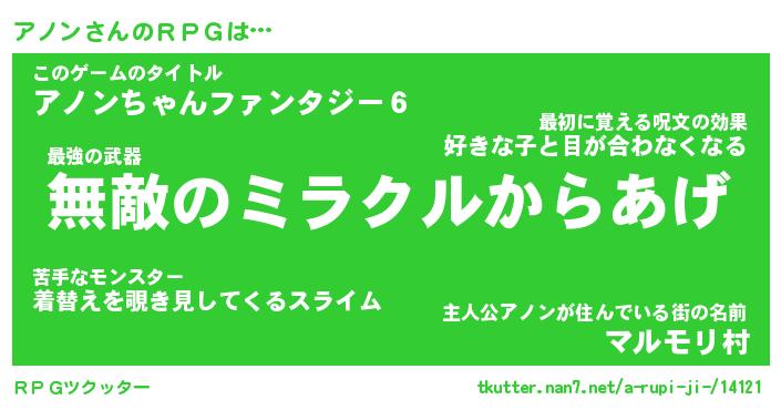 | ファンタジー風あだ名 | 『アノフェル』『エターナルアノンー』 |