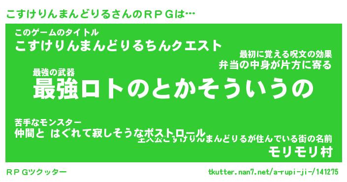 | 男性向けラノベタイトル風あだ名 | 『コスケリンマンドリルアートオンライン』 |