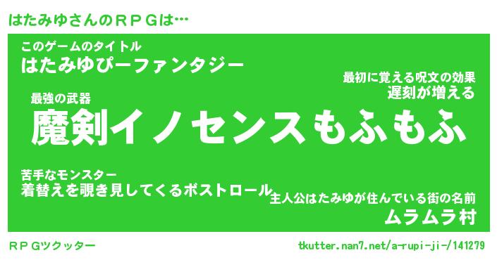 | 胡散臭い通販商品みたいなあだ名 | 『必ず成功する霊験あらたかなお札…その名も「はたみゆ」』 |