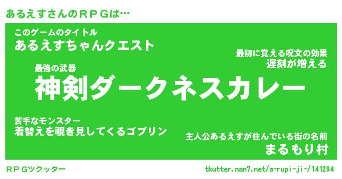 | 男性向けラノベタイトル風あだ名 | 『あるえすの憂鬱』 |