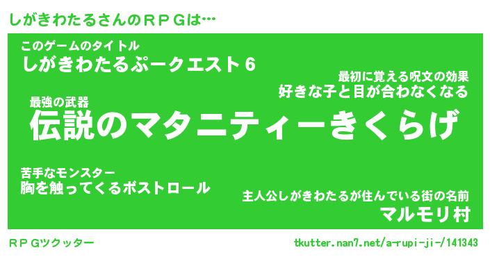 | 男性向けラノベタイトル風あだ名 | 『しがきわたるの憂鬱』 |