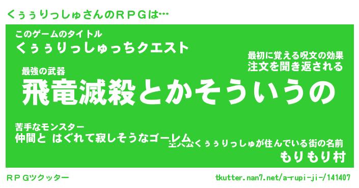 | 男性向けラノベタイトル風あだ名 | 『クゥゥリッシュアートオンライン』 |