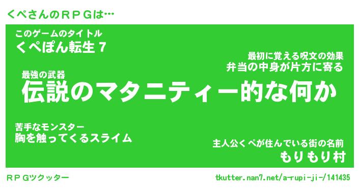| 男性向けラノベタイトル風あだ名 | 『くぺの憂鬱』 |