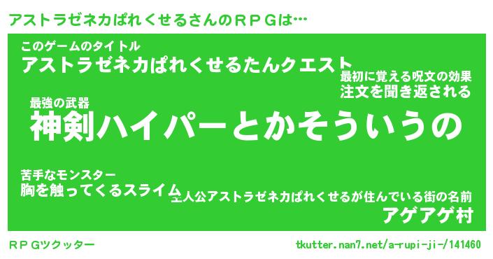 | 胡散臭い通販商品みたいなあだ名 | 『モテモテ間違いなしブレスレット…その名も「アストラゼネカぱれくせる」』 |
