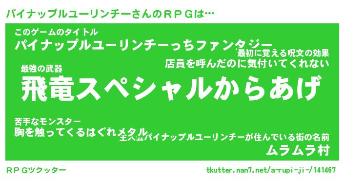 | 男性向けラノベタイトル風あだ名 | 『パイナップルユーリンチーアートオンライン』 |