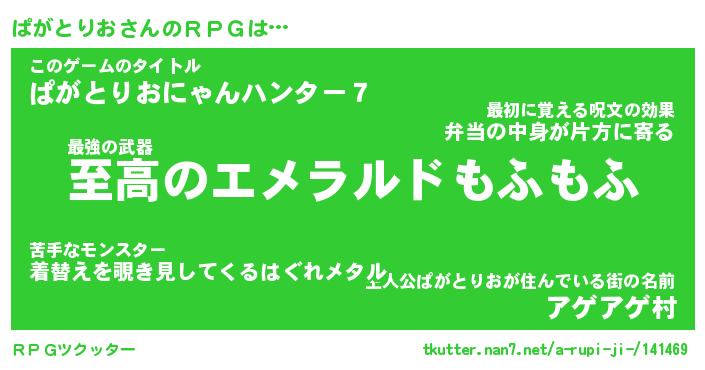 | 胡散臭い通販商品みたいなあだ名 | 『モテモテ間違いなし霊験あらたかなお札…その名も「ぱがとりお」』 |