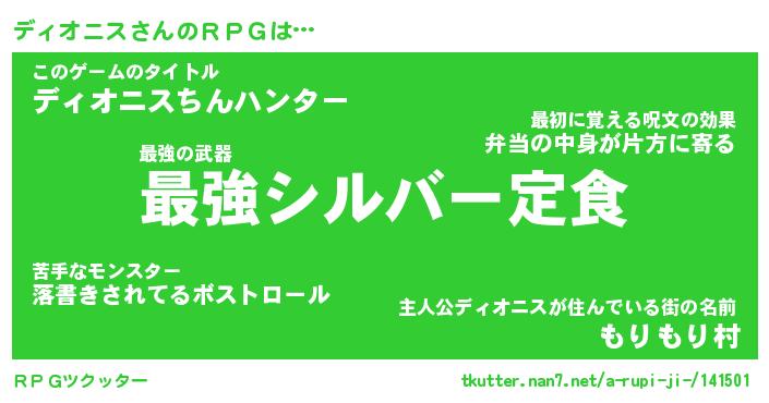 | 男性向けラノベタイトル風あだ名 | 『ディオニスアートオンライン』 |