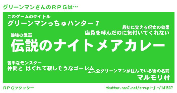 | 男性向けラノベタイトル風あだ名 | 『グリーンマンの憂鬱』 |
