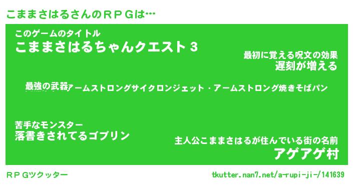 | 男性向けラノベタイトル風あだ名 | 『コママサハルアートオンライン』 |
