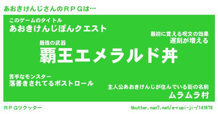 | 男性向けラノベタイトル風あだ名 | 『アオキケンジアートオンライン』 |