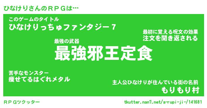 | 男性向けラノベタイトル風あだ名 | 『ヒナケリアートオンライン』 |