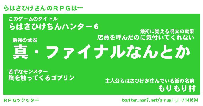 | ファンタジー風あだ名 | 『ラハフェル』『エターナルラハサヒケー』 |