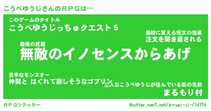 | 男性向けラノベタイトル風あだ名 | 『コウベユウジアートオンライン』 |