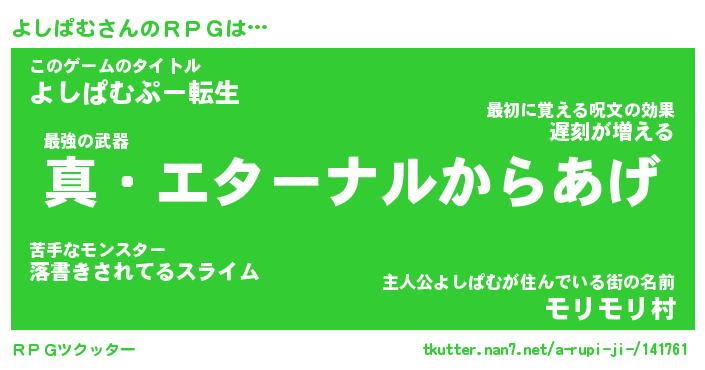 | ファンタジー風あだ名 | 『ヨシフェル』『エターナルヨシパムー』 |
