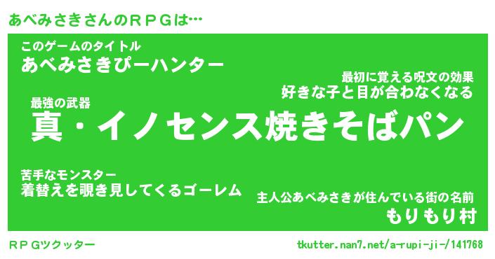 | ファンタジー風あだ名 | 『アベフェル』『エターナルアベミサキー』 |