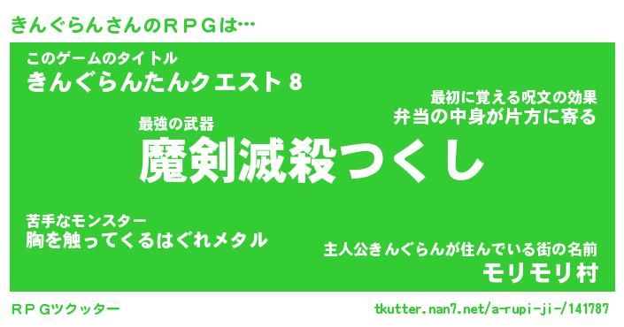 | 男性向けラノベタイトル風あだ名 | 『きんぐらんの憂鬱』 |