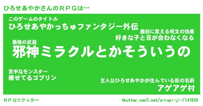 | 男性向けラノベタイトル風あだ名 | 『ヒロセアヤカアートオンライン』 |