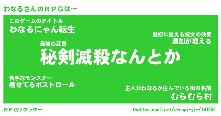 | 男性向けラノベタイトル風あだ名 | 『わなるの憂鬱』 |