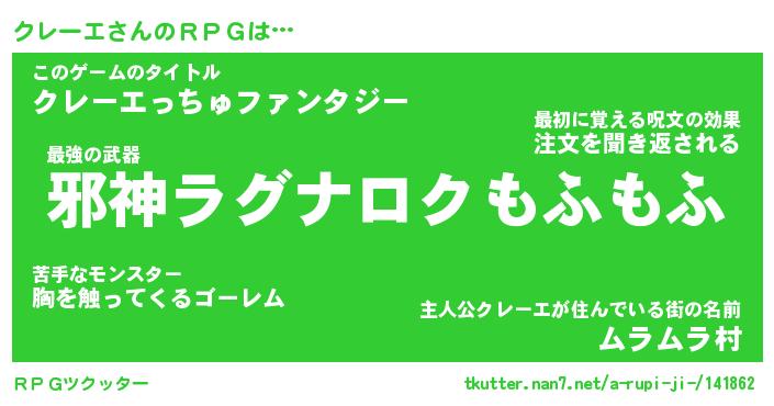 | 男性向けラノベタイトル風あだ名 | 『クレーエアートオンライン』 |
