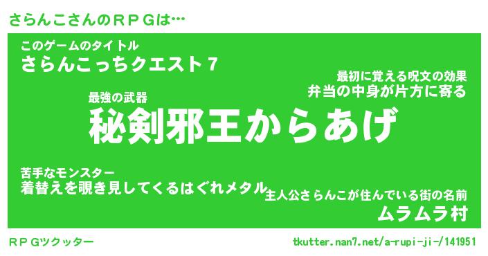 | 男性向けラノベタイトル風あだ名 | 『さらんこの憂鬱』 |
