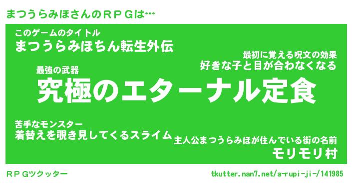 | 男性向けラノベタイトル風あだ名 | 『マツウラミホアートオンライン』 |