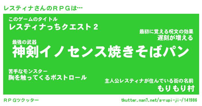 | ファンタジー風あだ名 | 『レスフェル』『エターナルレスティナー』 |