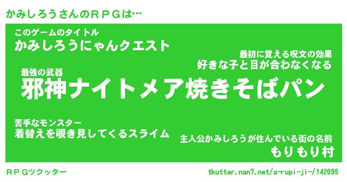 | ファンタジー風あだ名 | 『カミフェル』『エターナルカミシロウー』 |