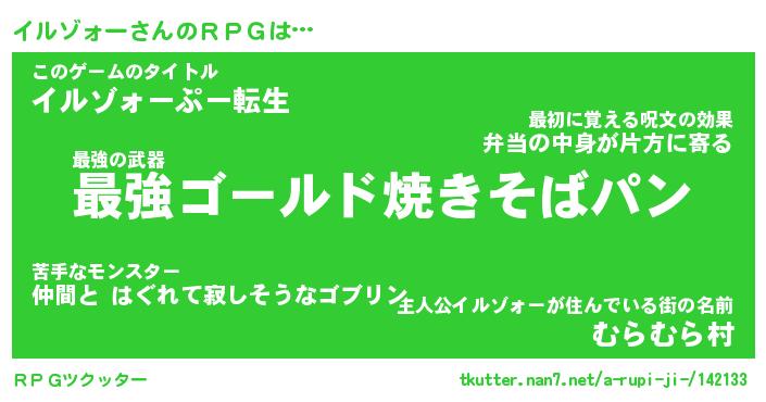 | ファンタジー風あだ名 | 『イルフェル』『エターナルイルゾォーー』 |