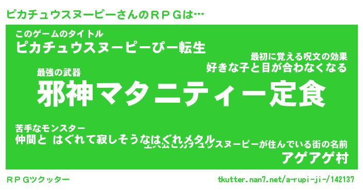 | 伝説のあだ名 | 『封印されしスナイパーピカチュウスヌーピー』 |