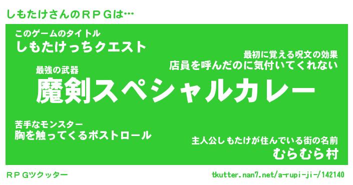 | 男性向けラノベタイトル風あだ名 | 『しもたけの憂鬱』 |