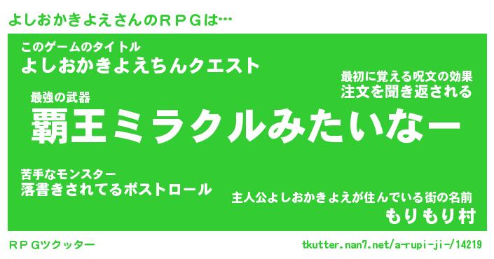 | 伝説のあだ名 | 『封印されし竜騎士よしおかきよえ』 |