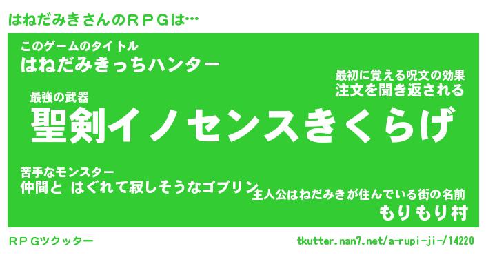 | 胡散臭い通販商品みたいなあだ名 | 『必ず成功する霊験あらたかなお札…その名も「はねだみき」』 |