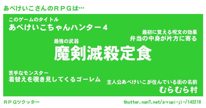 | ヒーロー風カッコイイあだ名 | 『スーパーアベケイコ』『暗黒騎士アベ』 |