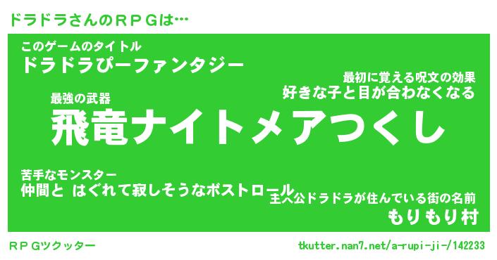 | ヒーロー風カッコイイあだ名 | 『スーパードラドラ』『暗黒騎士ドラ』 |