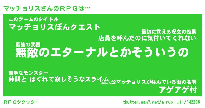 | 男性向けラノベタイトル風あだ名 | 『マッチョリスアートオンライン』 |