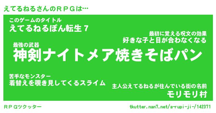 | 胡散臭い通販商品みたいなあだ名 | 『モテモテ間違いなし霊験あらたかなお札…その名も「えてるねる」』 |