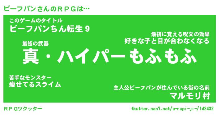| ファンタジー風あだ名 | 『ビーフェル』『エターナルビーフパンー』 |