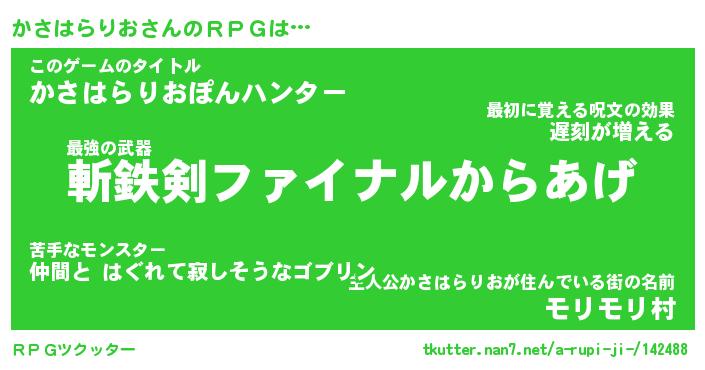 | 胡散臭い通販商品みたいなあだ名 | 『必ず成功するブレスレット…その名も「かさはらりお」』 |