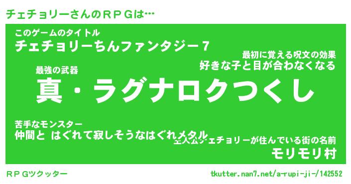 | 伝説のあだ名 | 『封印されし竜騎士チェチョリー』 |