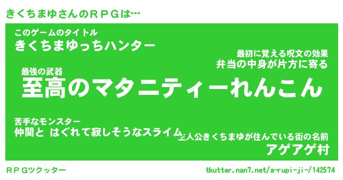 | 男性向けラノベタイトル風あだ名 | 『キクチマユアートオンライン』 |