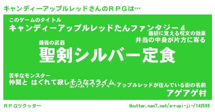 | ヒーロー風カッコイイあだ名 | 『スーパーキャンディーアップルレッド』 |