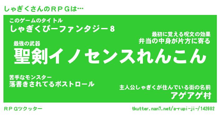 | ファンタジー風あだ名 | 『シャフェル』『エターナルシャギクー』 |