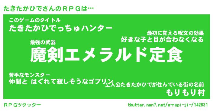 | 男性向けラノベタイトル風あだ名 | 『たきたかひでの憂鬱』 |