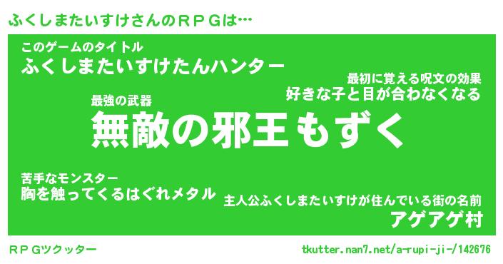 | ヒーロー風カッコイイあだ名 | 『スーパーフクシマタイスケ』 |