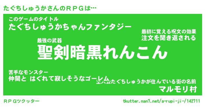 | 男性向けラノベタイトル風あだ名 | 『たぐちしゅうかの憂鬱』 |