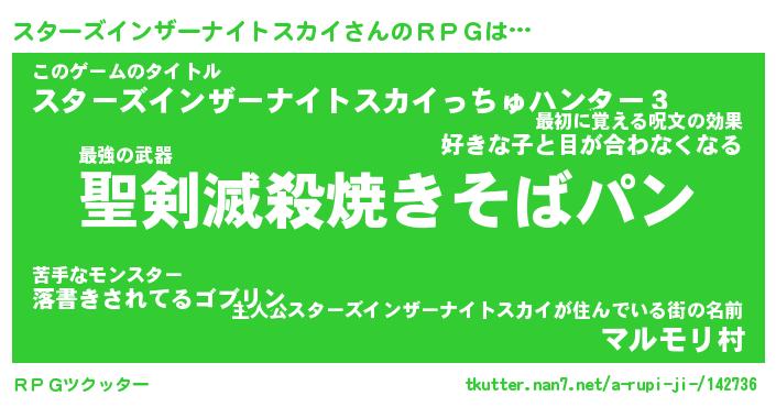 | 胡散臭い通販商品みたいなあだ名 | 『必ず成功する霊験あらたかなお札…その名も「スターズインザーナイトスカイ」』 |