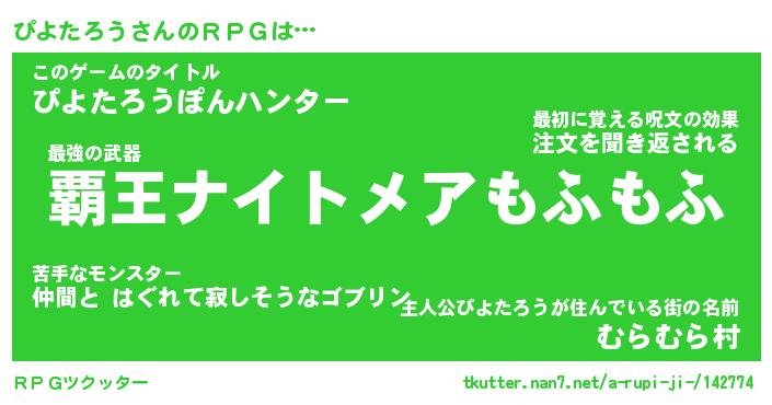 | ファンタジー風あだ名 | 『ピヨフェル』『エターナルピヨタロウー』 |