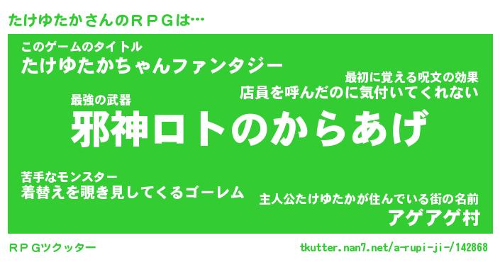 | ファンタジー風あだ名 | 『タケフェル』『エターナルタケユタカー』 |