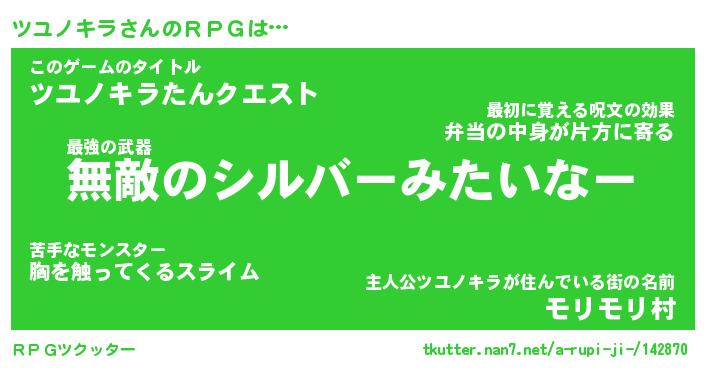 | 男性向けラノベタイトル風あだ名 | 『ツユノキラアートオンライン』 |