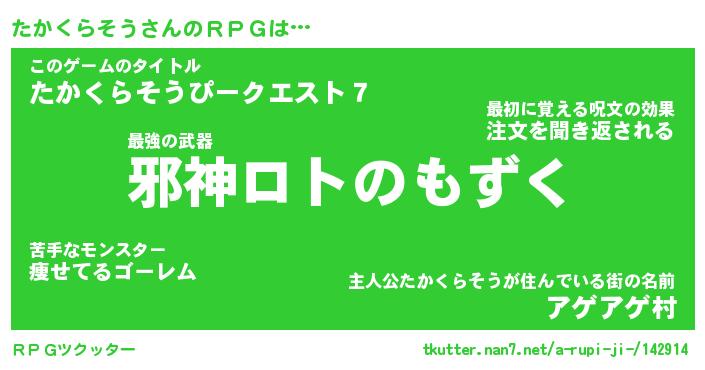 | 伝説のあだ名 | 『封印されし竜騎士たかくらそう』 |